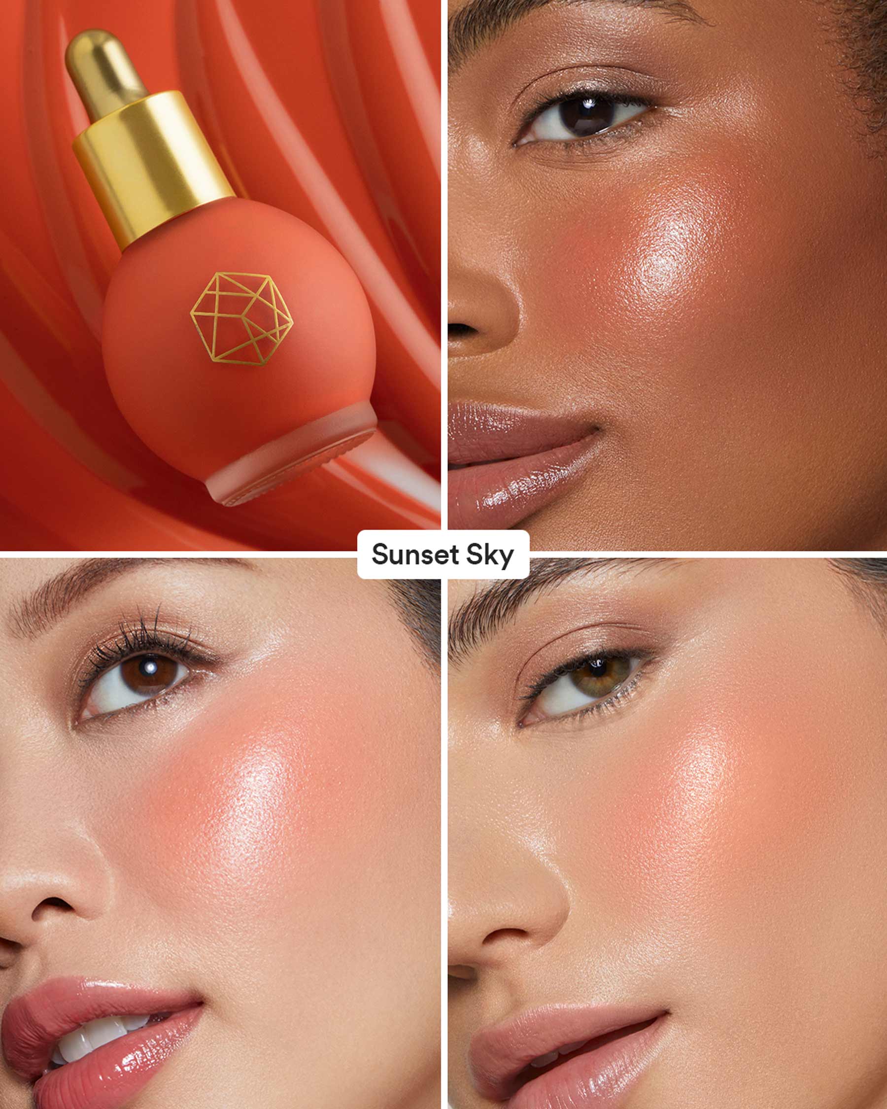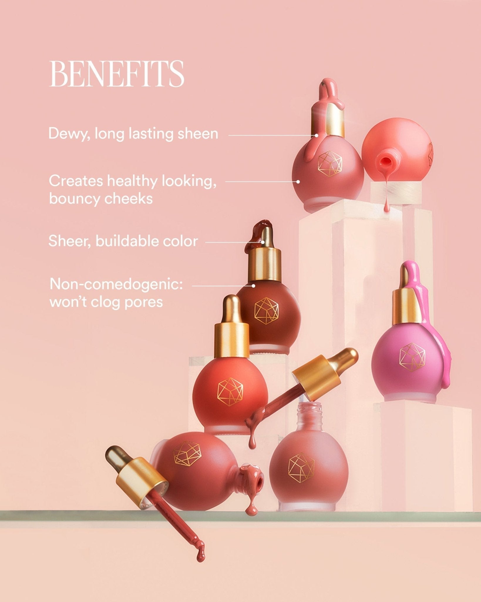 For first time use, prime the dropper by squeezing the bulb 4-6 times to fill the vial with product before dispensing the desired amount. No priming necessary for future usage. Apply ½ to 1 drop and blend into skin with your fingers, sponge or brush. Add more to intensify color.