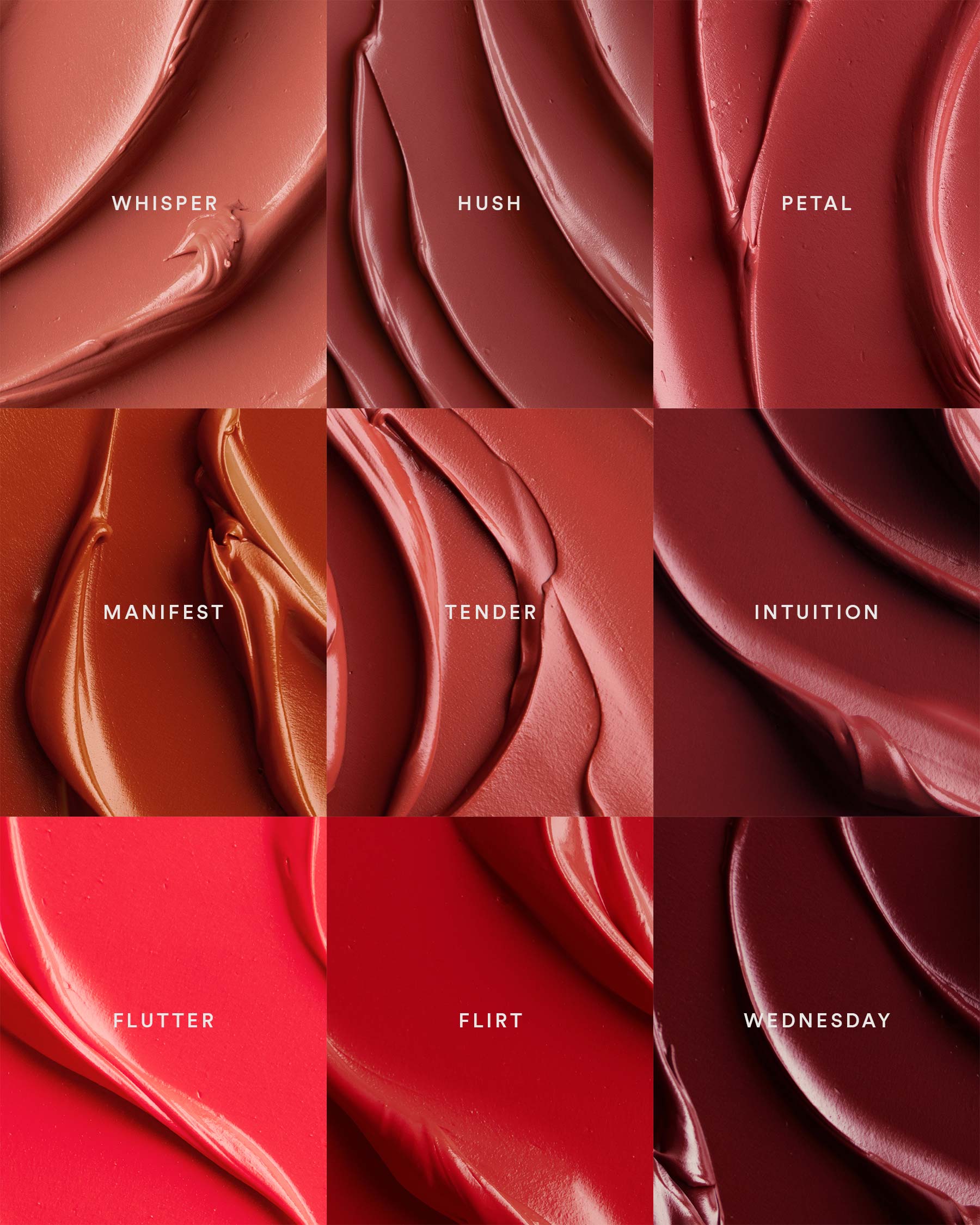 Dimethicone, Dimethicone/Vinyl Dimethicone Crosspolymer, Cyclopentasiloxane, Polyglyceryl-2 Triisostearate, Dimethicone Crosspolymer, Titanium Dioxide, 1,2-Hexanediol, Silica, Ethylhexylglycerin, Fragrance, Persea Gratissima (Avocado) Oil, Triethoxycaprylylsilane, Tocopherol, Water, Butylene Glycol, Glycerin, Caprylyl Glycol, Acetyl Hexapeptide-8, Copper Tripeptide-1, Hexapeptide-9, Nonapeptide-1, Palmitoyl Pentapeptide-4, Palmitoyl Tetrapeptide-7, Palmitoyl Tripeptide-1, Tripeptide-1, Diisostearyl Malate (Intuition, Manifest, Petal, Tender, Whisper), Red 7 Lake. May contain (+/-): Iron Oxides, Red 28 Lake, Red 6, Yellow 6 Lake, Yellow 5 Lake, Blue 1 Lake